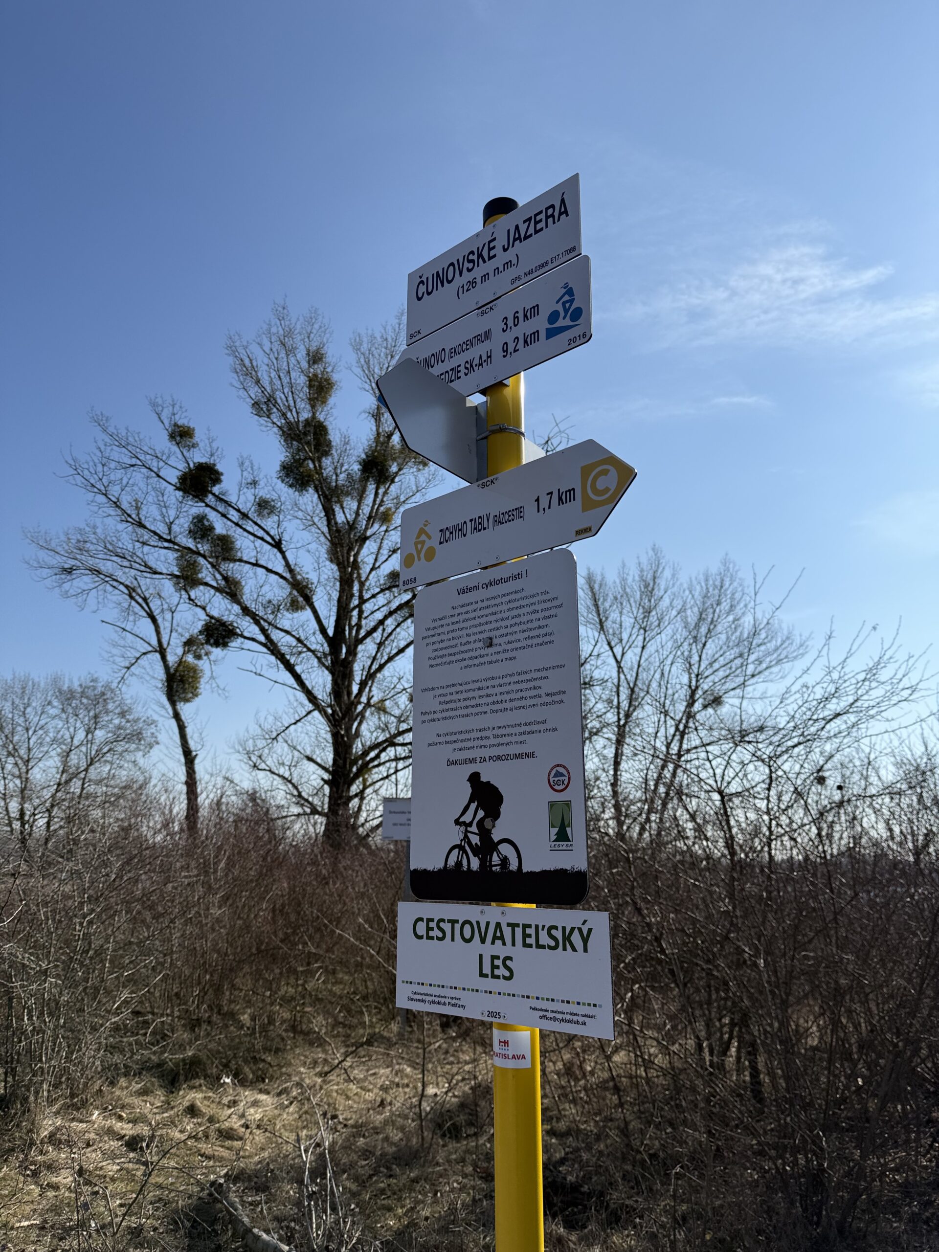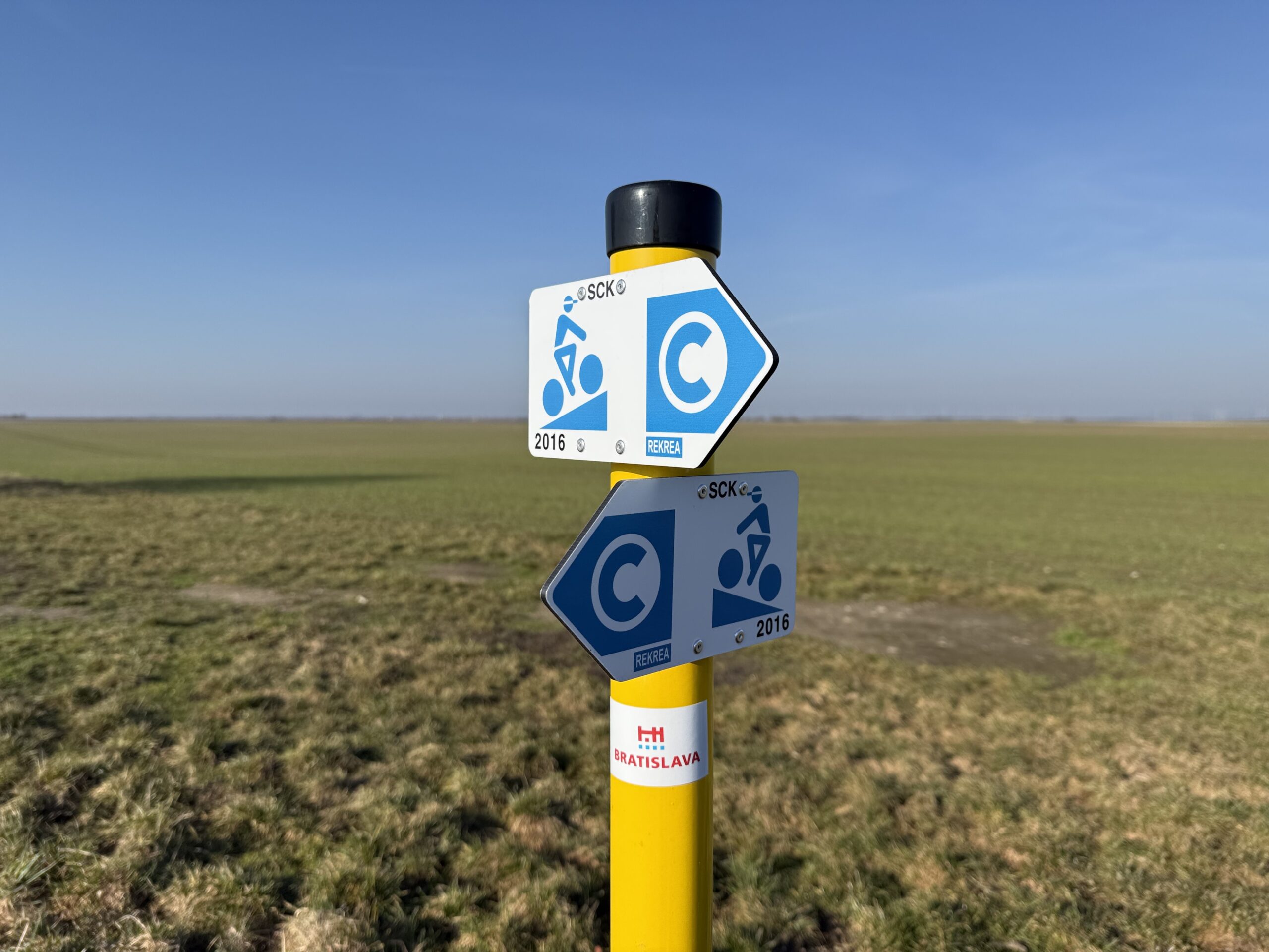 Charakteristika: Modrá cyklotrasa vedie z Bratislavy – Rusoviec cez lužné lesy a Čunovské jazerá až k Trojmedzí (SK–A–H), pričom ponúka pokojnú jazdu v prírode, tieň lesov aj atraktívne výhľady v blízkosti hraníc troch štátov.